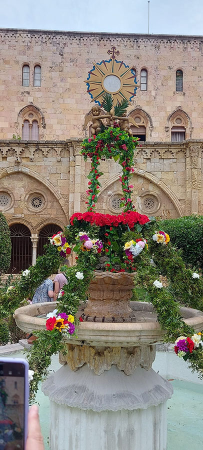 És ara en aquest moment quan s’inicia la sortida de processó de Corpus entonant el “Pange lingua”; estrofes 1 i 3 cantades pel Cor i les 2 i 4 cantades en gregorià per tothom. A continuació cantem el “Ave Verum” de W.A. Mozart.