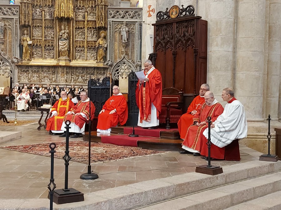 En aquest moment, s’inicia la Missa amb la processó d’entrada i el trasllat de l’arqueta amb les relíquies dels sants, des de la capella de Sant Fructuós fins al presbiteri, mentre interpretem “Més abrandats per l’amor de Crist…” de Mons. M. Barbarà acompanyant a Mn. Magí que fa de solista.